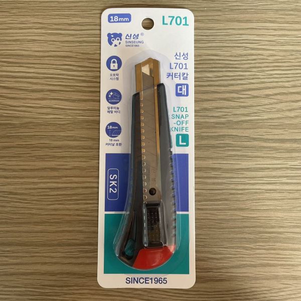 The knife is also suitable for use in the automotive industry, where it can be used for cutting materials such as leather, carpet, and vinyl. The SINSEUNG L701 utility knife is also useful in the woodwork industry, where it can be used for cutting materials such as wood, PVC, and plastic. The knife is also suitable for use in the food industry, where it can be used for cutting food products such as meats, fruits, and vegetables.