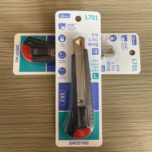 The SINSEUNG L701 18mm utility knife is an essential tool for anyone who needs a reliable and durable cutting tool. The knife is easy to use and maintain, making it an ideal tool for both professionals and home users. Whether you need to cut cardboard, leather, or open packages, the L701 utility knife is the perfect tool for the job.