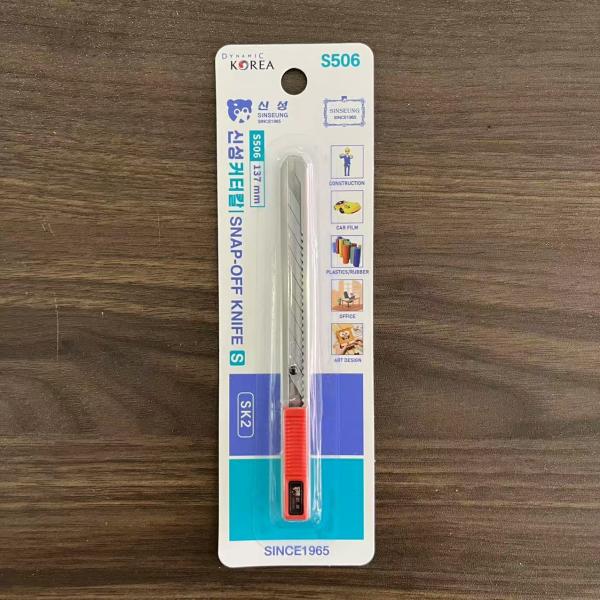 SINSEUNG's 9mm Utility Knife, model number S506, is a versatile tool suitable for a variety of product application occasions and scenarios. Its compact size makes it a perfect choice for tasks that require a small knife, providing users with precise cutting abilities in tight spaces.